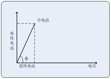 阻性電流基波 = 全電流基波.cosφ,φ為全電流對(duì)電壓基波的相角差。如圖: