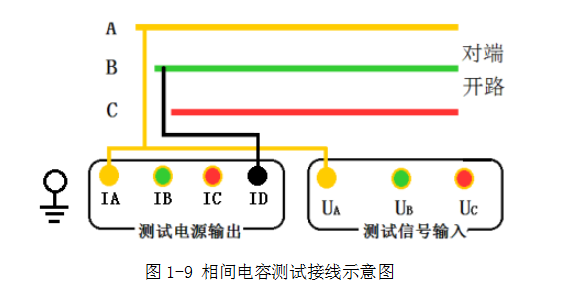 線路對(duì)端開路,A和UA接A相線路,ID接B相線路。如圖1-9。
